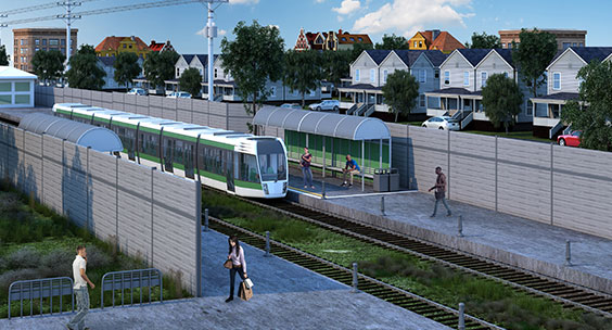 Retaining Walls - Calgary LRT Station 3D Rendering